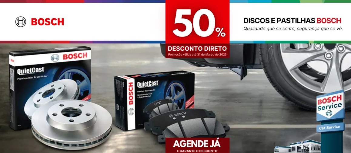 Aproveite esta oferta exclusiva e substitua os discos e pastilhas BOSCH a metade do preço!